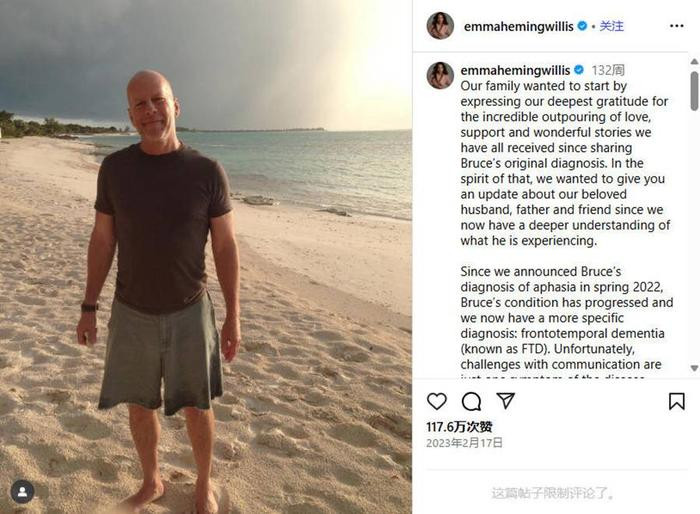 值得一提的是,在布鲁斯·威利斯与这项残酷疾病抗争的艰难时刻,他的家人始终陪伴在旁,是他的坚强后盾。