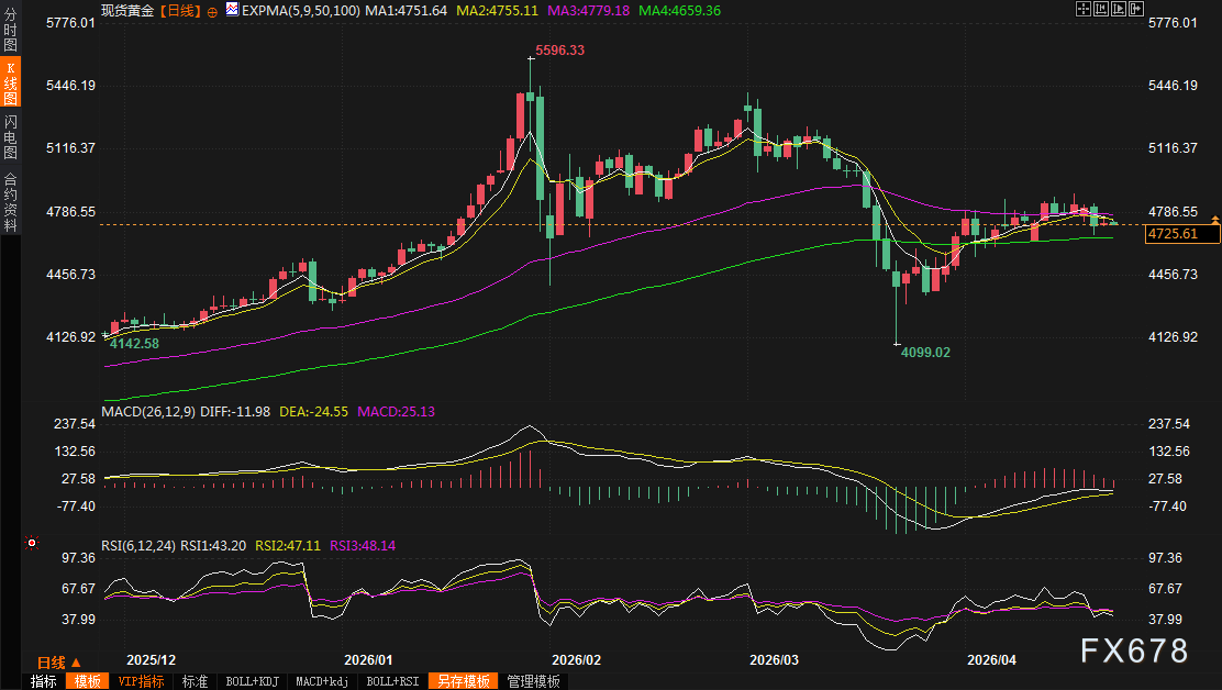 (现货黄金日线图,来源:易汇通)北京时间07:48,现货黄金现报4727.24美元/盎司。